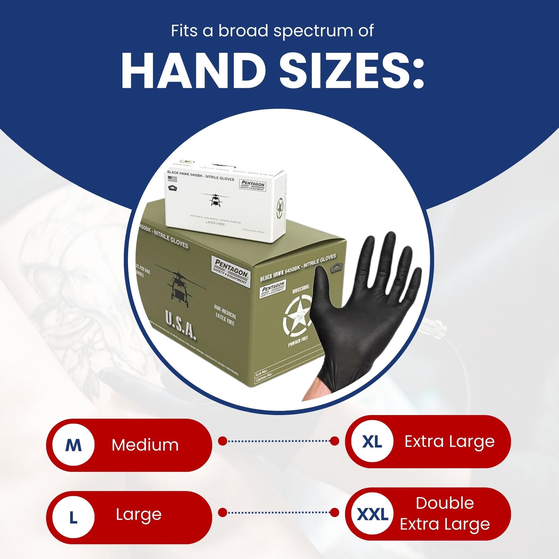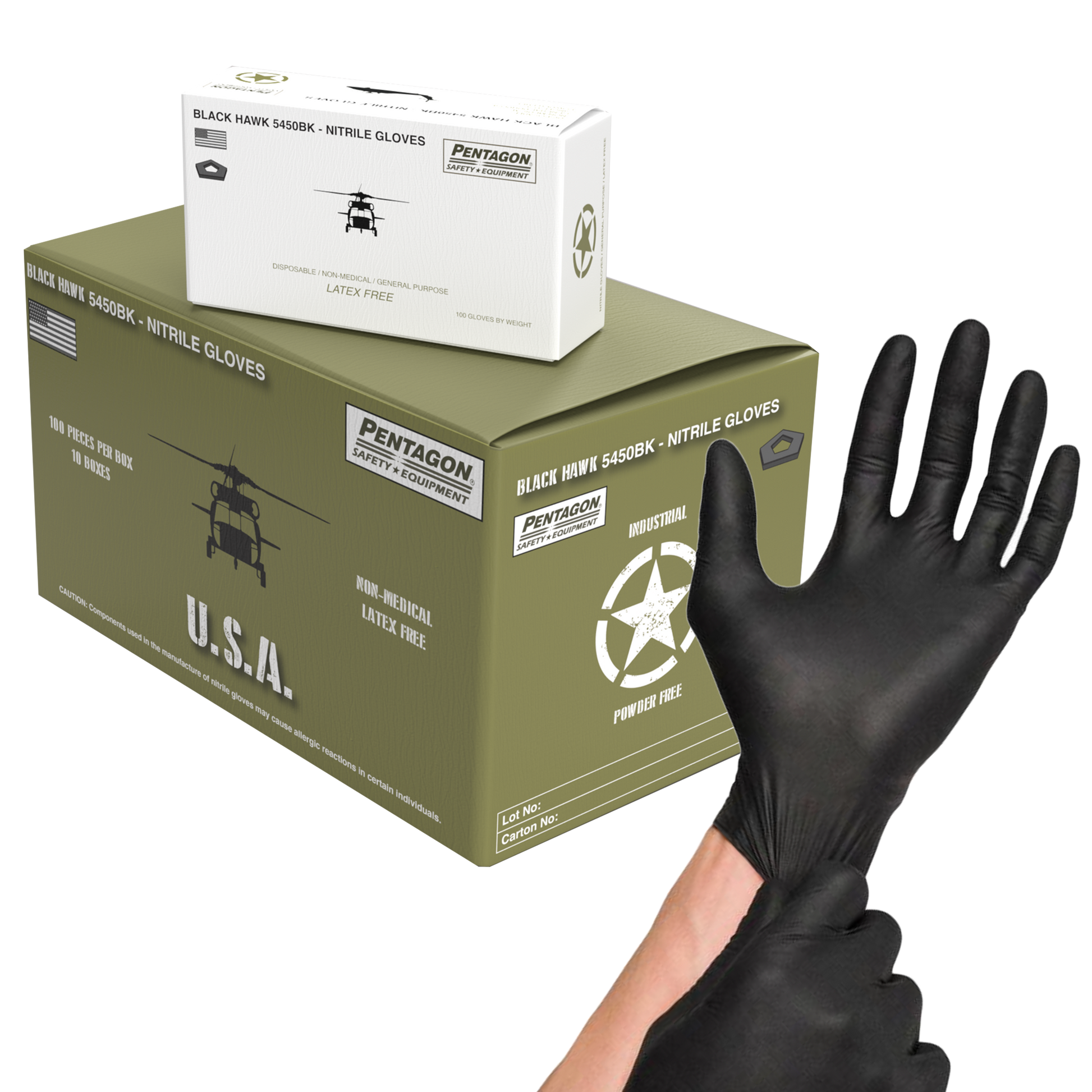 Black Hawk - 5 mils Disposable Nitrile Gloves, Black, Powder Free, Latex Free, Industrial Gloves