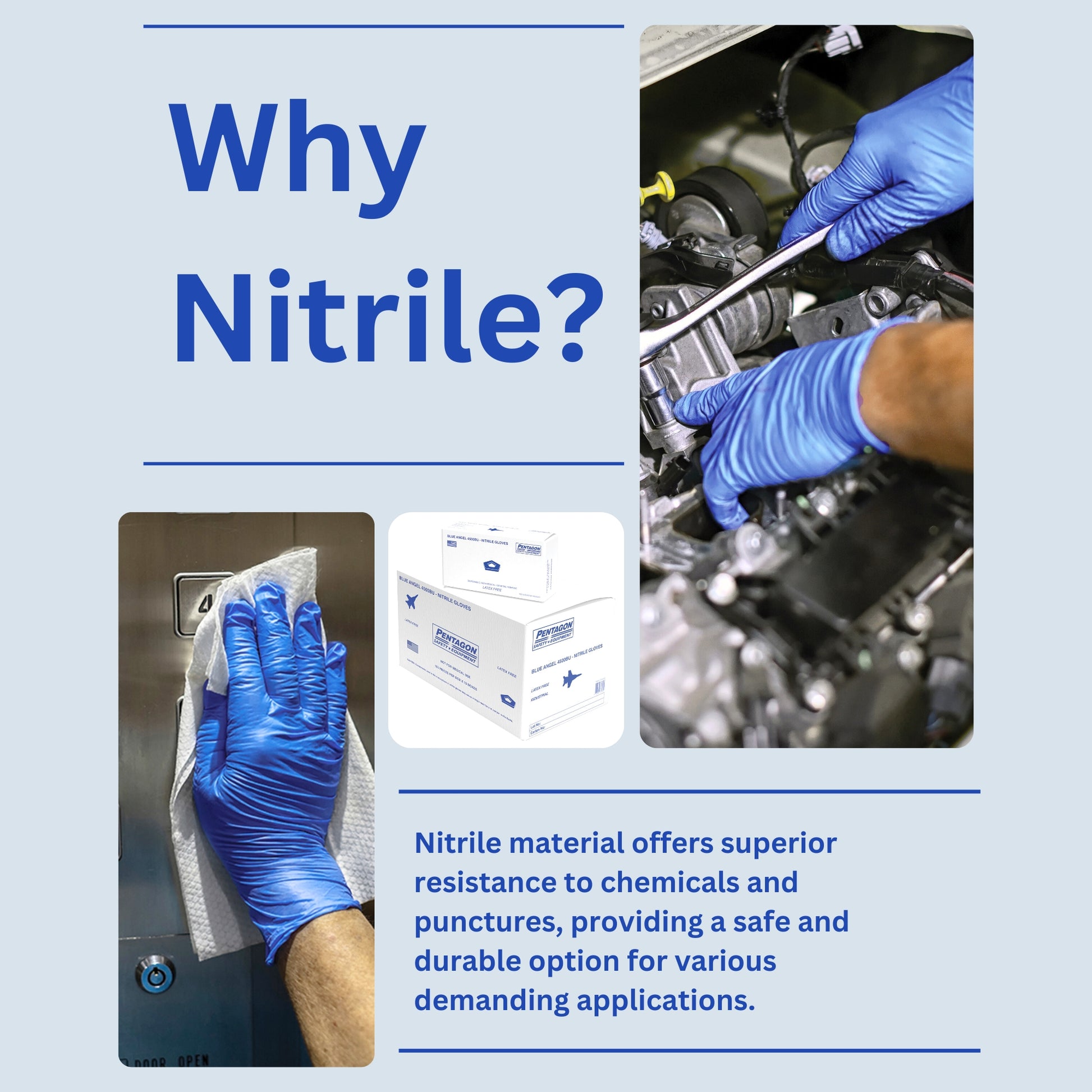 Blue Angel - 5 mils Disposable Gloves, Latex Free, Powder Free, Industrial Nitrile Gloves