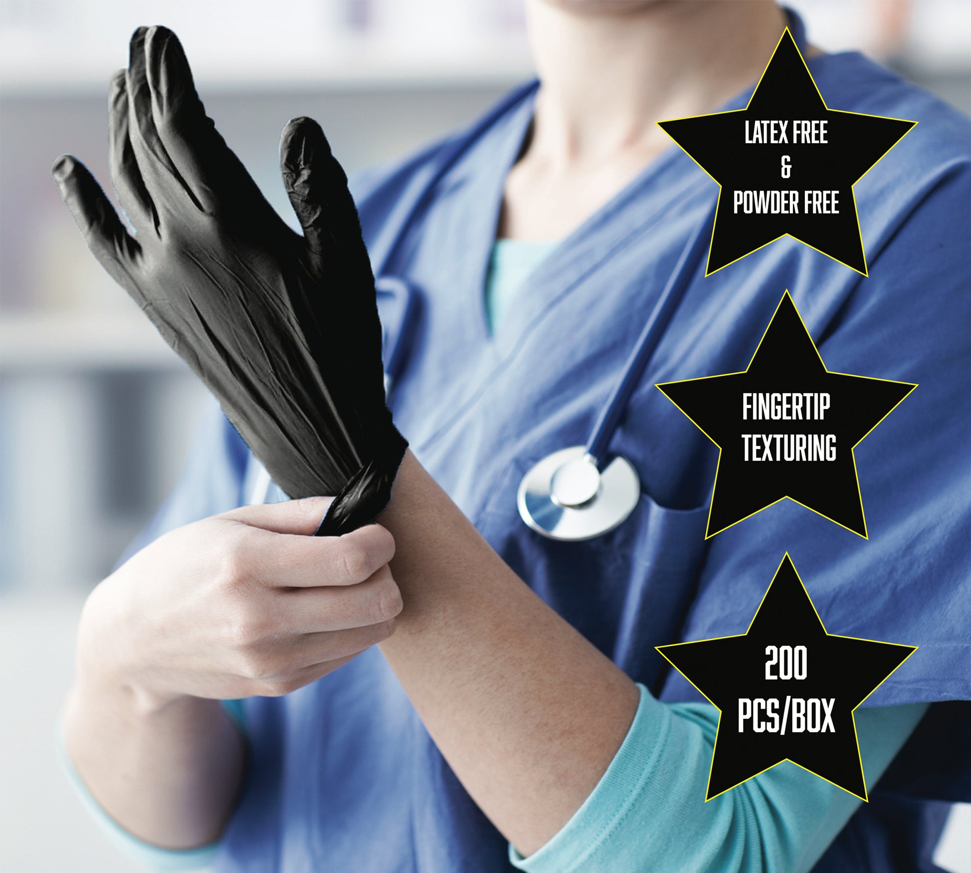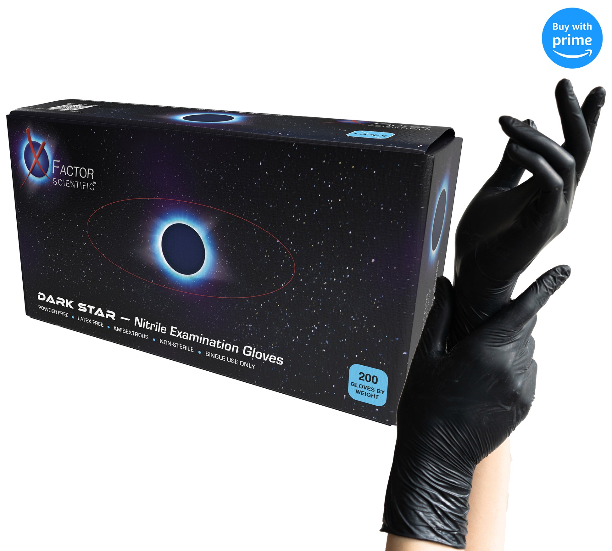 Dark Star Nitrile Examination Gloves - Disposable, Latex and Powder Free, Black Medical Glove, Exam Grade, Tattoo, Lab, Cleaning
