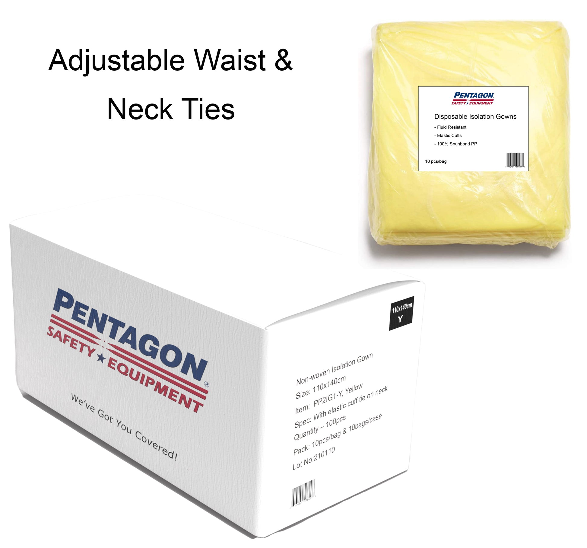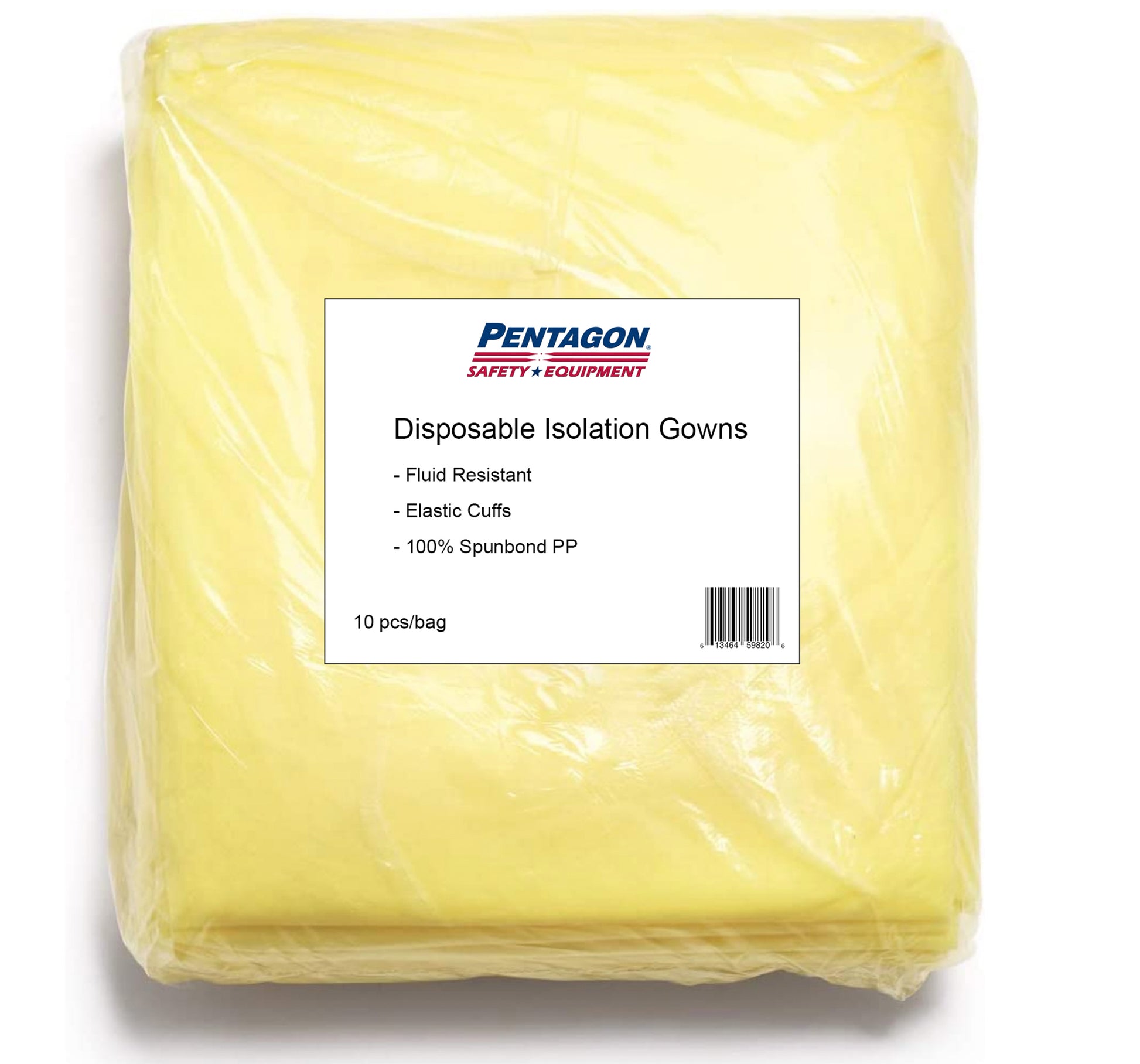 Yellow, Disposable, one-size-fits-all, Polypropylene Isolation Gown. Latex free, rear entry style with attached back and neck ties for a secure, comfortable fit.