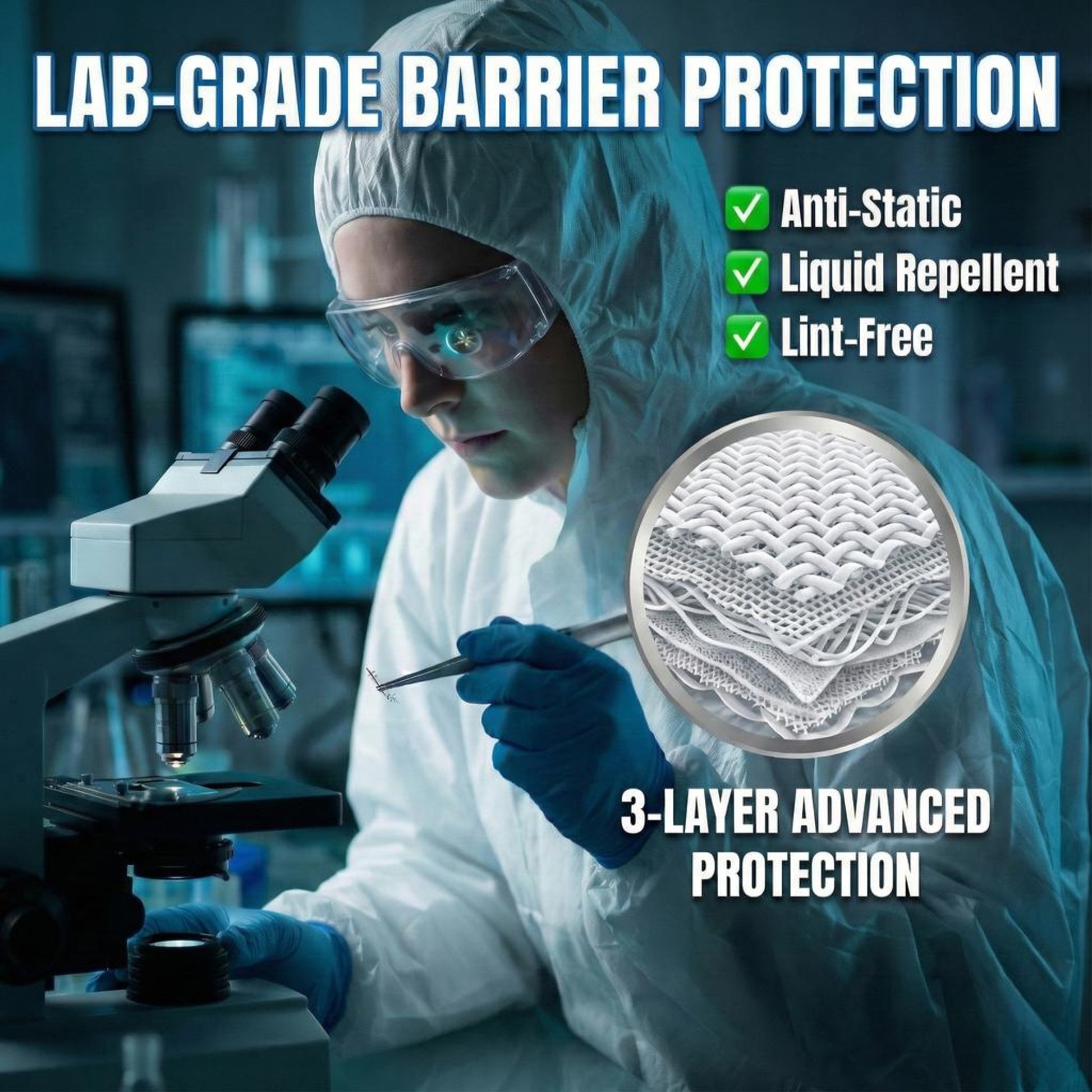 Protective Coveralls with Hood Breathable 3-Layer PTFE Suit for Industrial Use (5 Pack, Large)